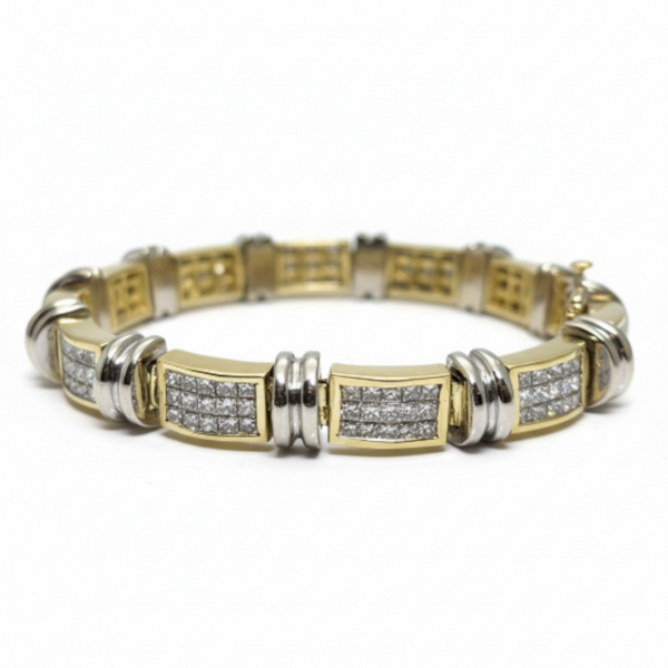 Estate lady's bi-color 18 karat fancy link bracelet with 180 approximately 5.00tw princess G/H VS2/SI1 diamonds.