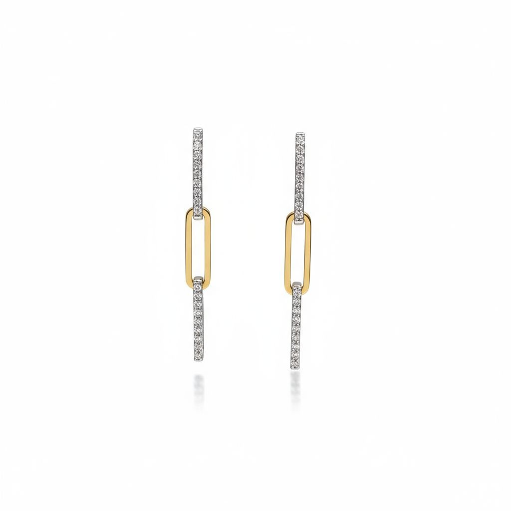 14k Bi-color Dangle Diamond Earrings