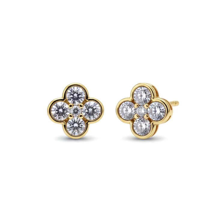 Lady's yellow 14 karat flower stud earrings with 10 approximately 1.15tw round E/F VS1/VS2 diamonds.