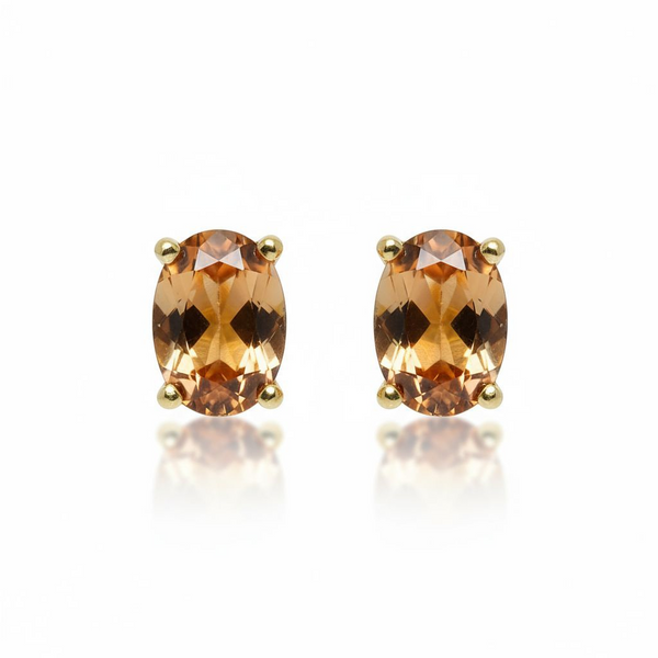 Lady's yellow 14 karat stud earrings with 2=1.42tw oval imperial topazes.