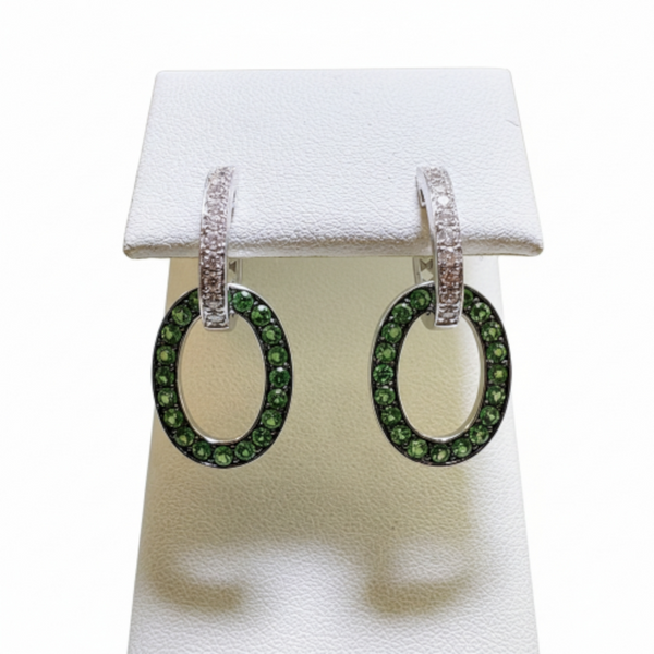 Estate 18kw Tsavorite Garnet & Diamond Dangle Earrings