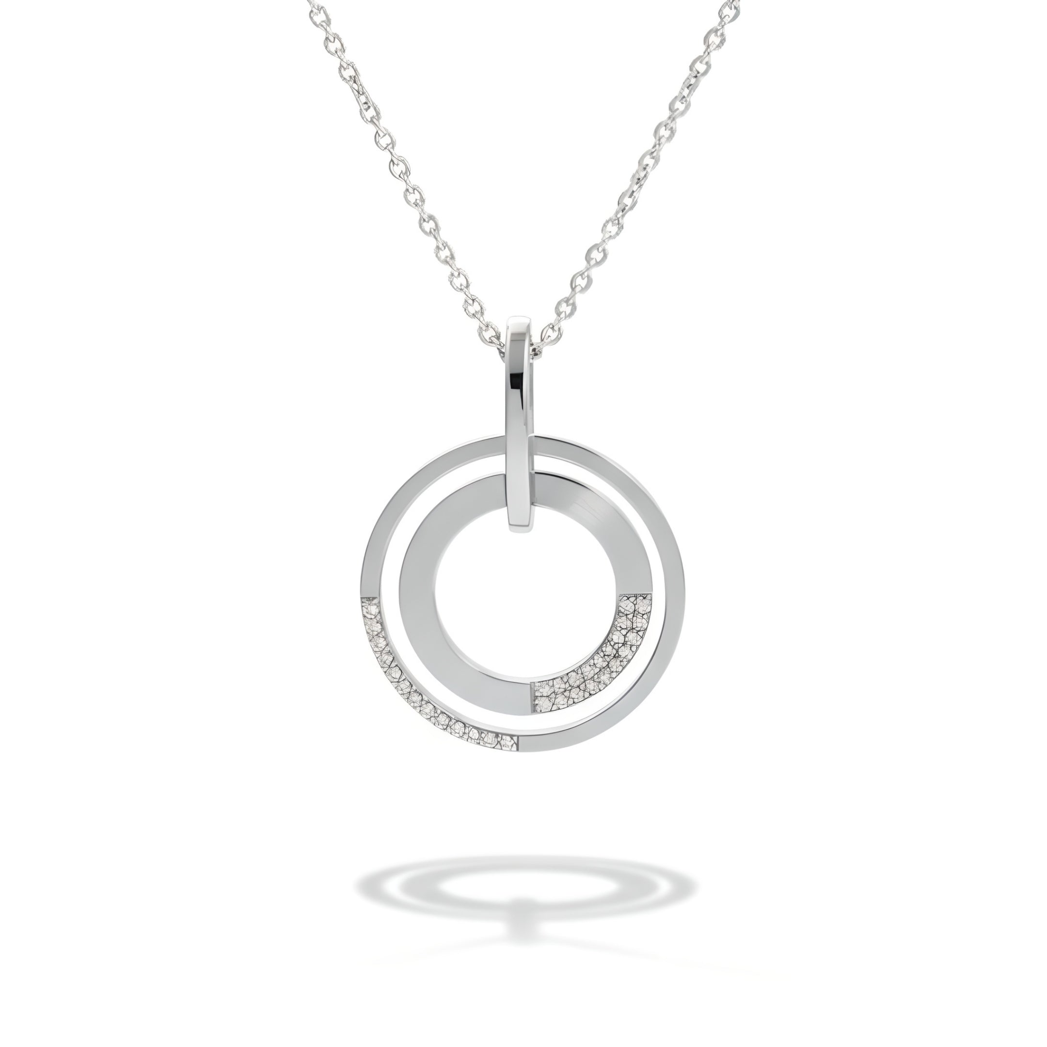 Lady's white 14 karat double circle pendant with 0.23Tw round G/H Si2 diamonds.