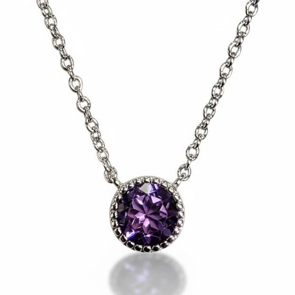 Lady's white sterling silver necklace length 18 with one approx. 6.00mm round amethyst.
