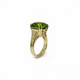 Lady's yellow 18 karat custom fashion ring with one 10.25ct cushion peridot and 4=0.26tw round D/E VS1/VS2 diamonds.