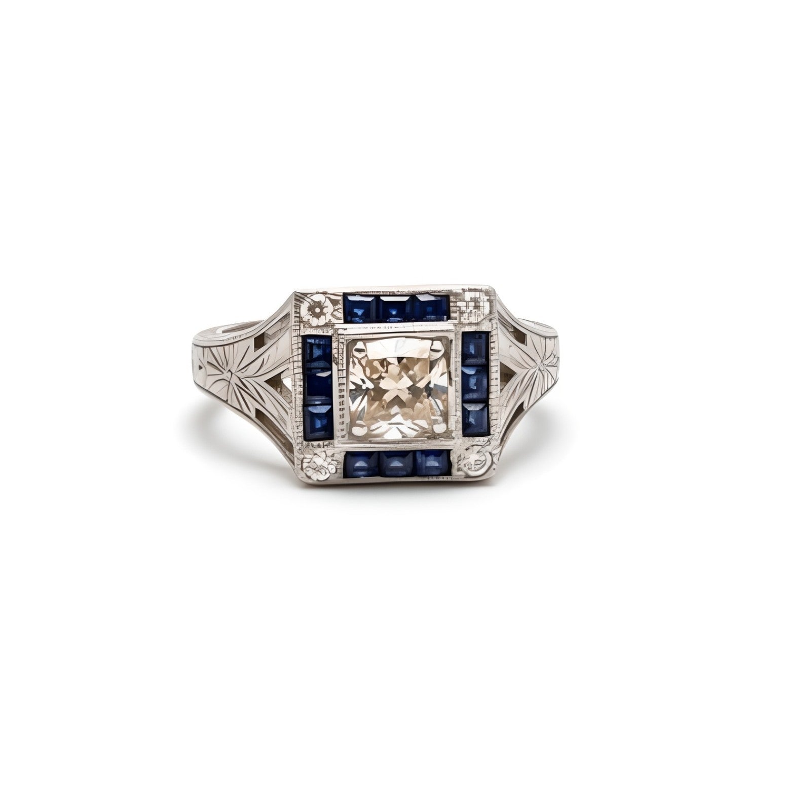 Platinum Art Deco Style Sapphire and Diamond Ring