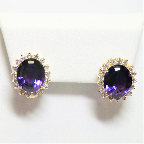 Estate lady's yellow 18 karat earrings with 2 approximately 6.00ctw oval amethysts and 34 approximately 1.20tw round G/H VS2/SI1 diamonds.