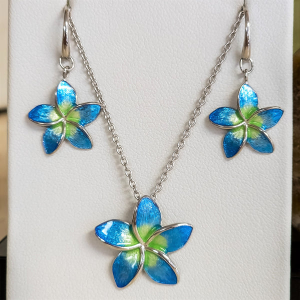 Nicole Barr Sterling Silver Blue Plumeria Earrings